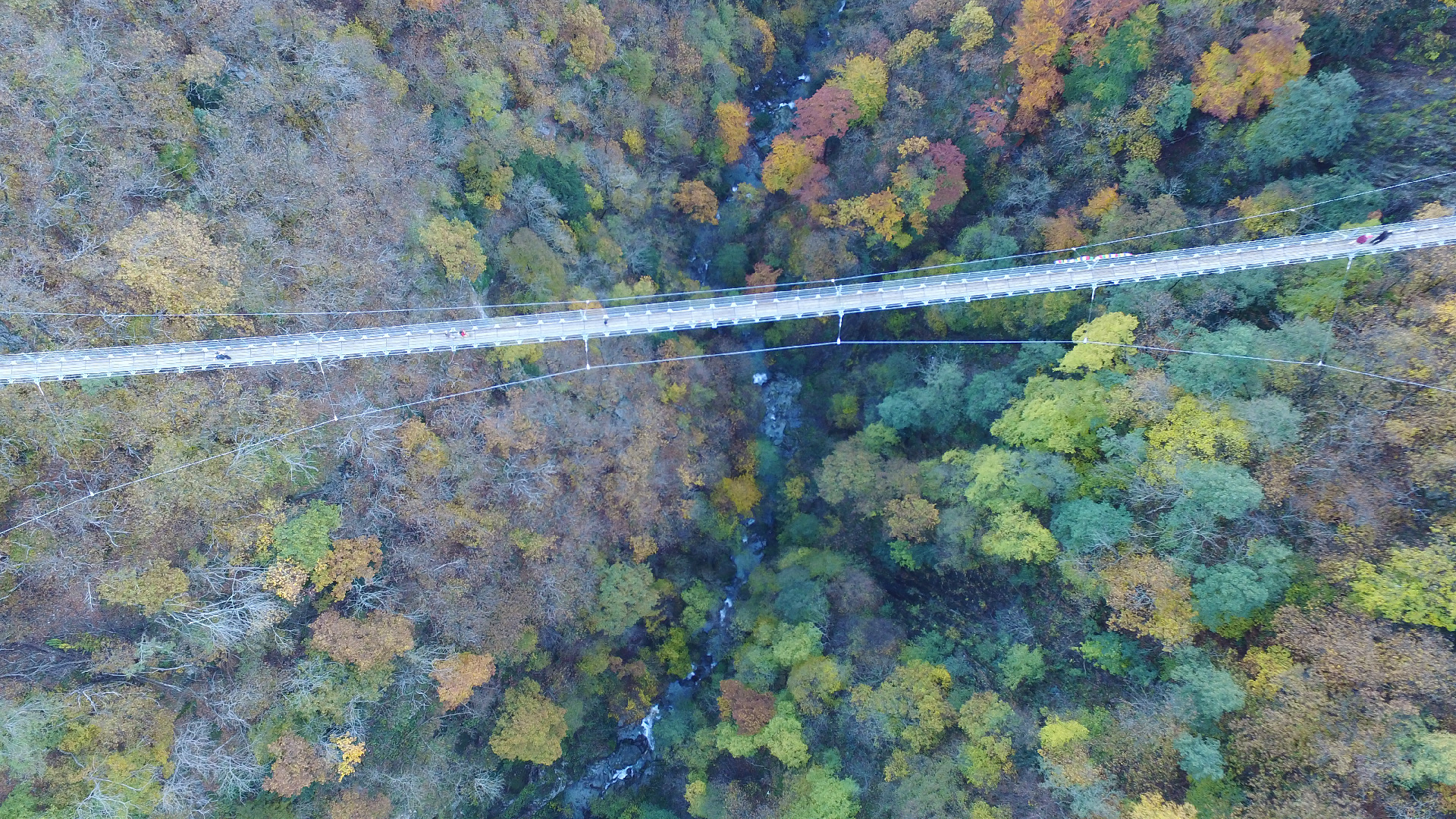 Il ponte tibetano “Carasc” sospeso sopra la valle di Sementina unisce i territori montani dei comuni di Monte Carasso e di Sementina. Ottobre 2015.